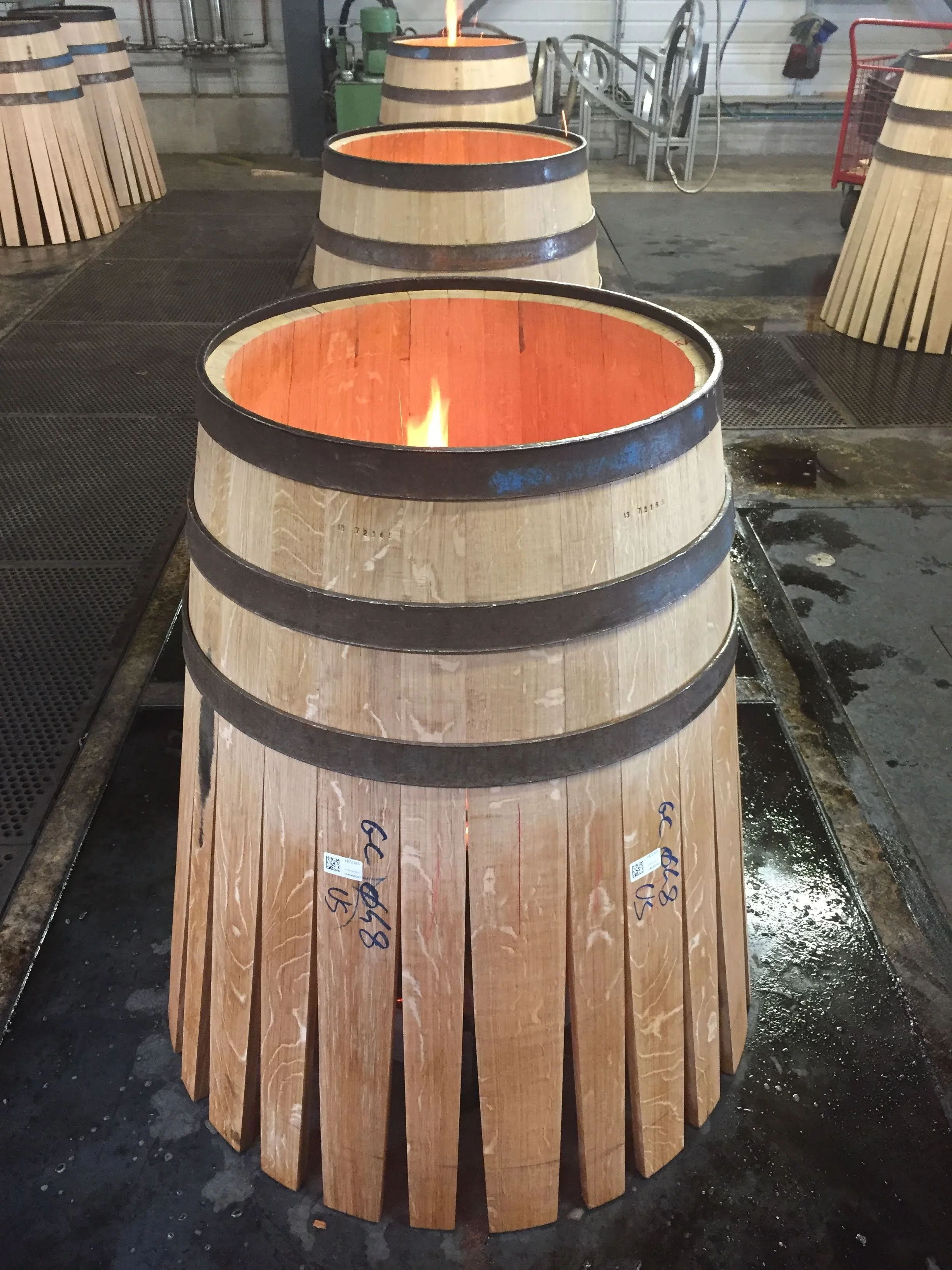 A 330l barrel being toasted at Taransaud Cooperage in France, before the final hoops are fitted